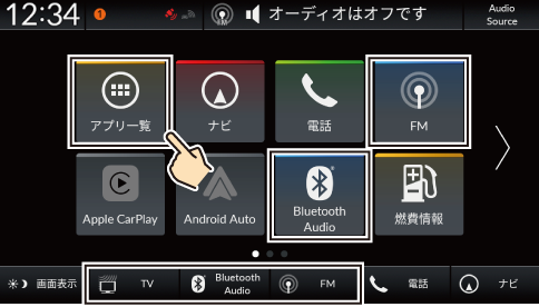 (音量/オーディオ)ノブを押し、オーディオの電源をオンにする。