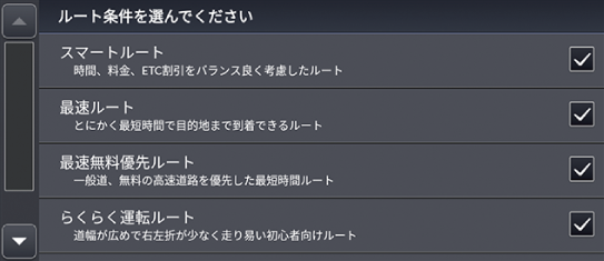 - スマート:時間、料金、ETC割引をバランス良く考慮したルートです。