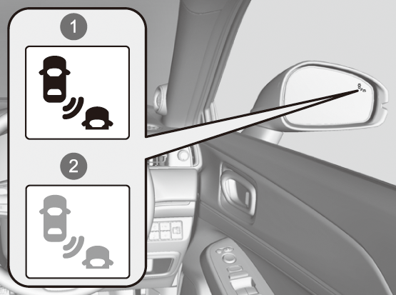 ブラインドスポットインフォメーション警告灯:両側のドアミラー内にあります。