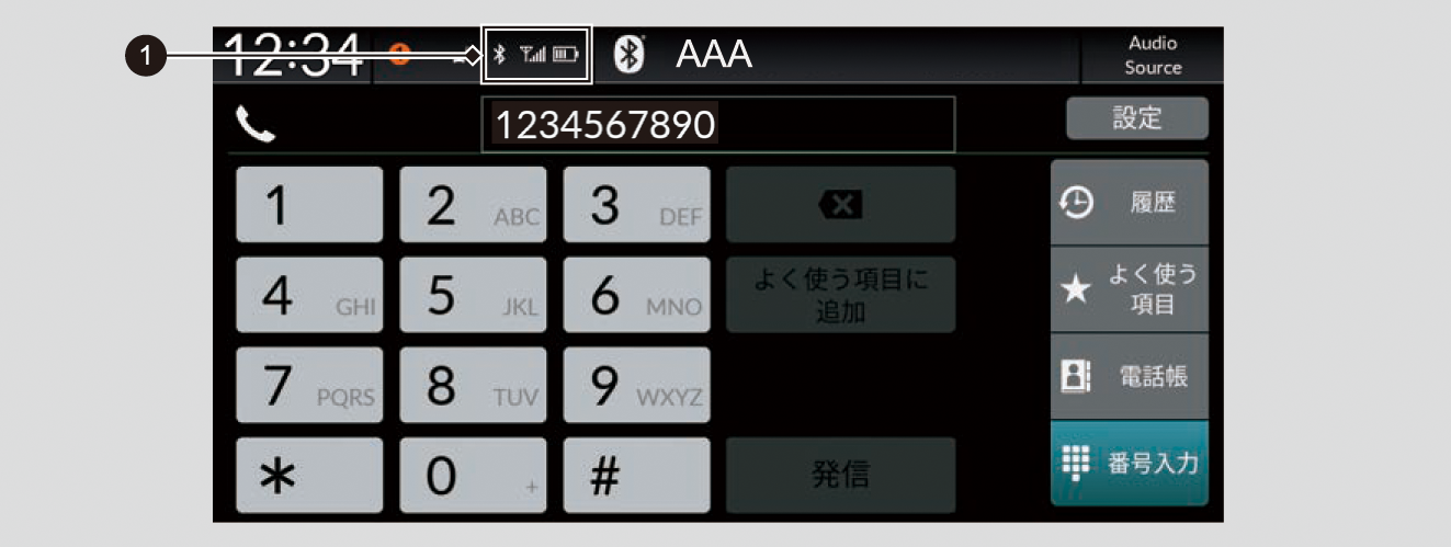 Bluetooth接続が完了すると、画面の右上に携帯電話の状態を表す以下のアイコンが表示されます。
