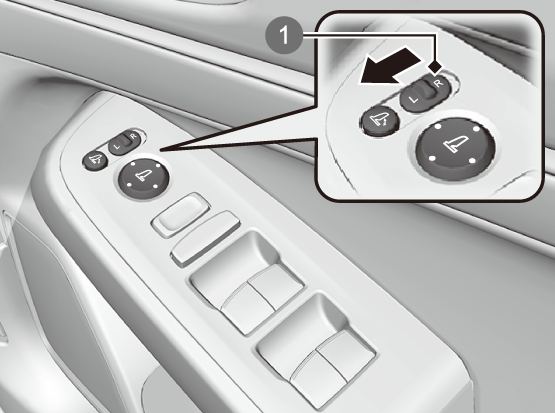 パワーモードがONモードで、ドアミラーの左右切り換えスイッチが左側にあることを確認します。