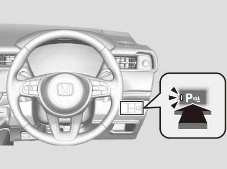 パワーモードがONモードのときに、パーキングセンサーシステムスイッチを押して、システムのONとOFFを切り換えます。