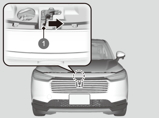 - ボンネット中央のレバーを右に押してロック機構を解除し、ボンネットを開ける。