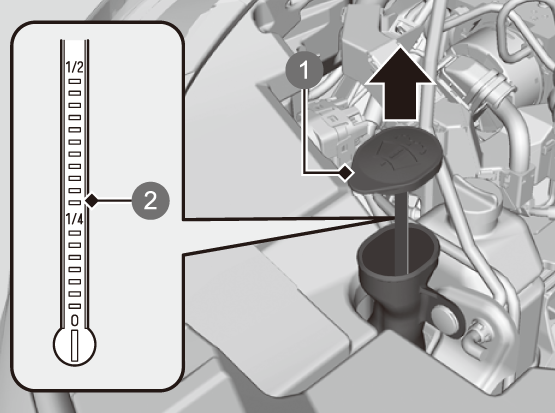 ウォッシャー液の量は、キャップに付いているウォッシャー液レベルゲージにより確認します。
