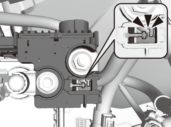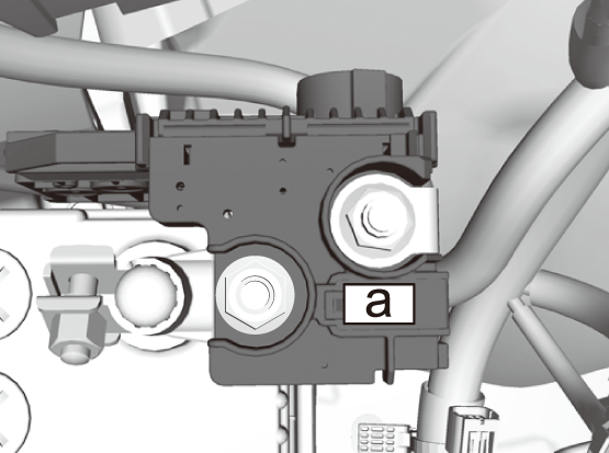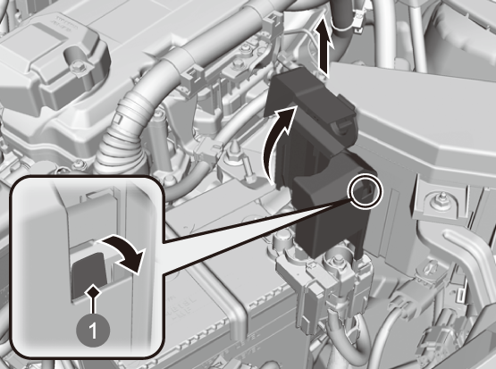 - 12Vバッテリーの+端子の隣にあるカバーを開ける。