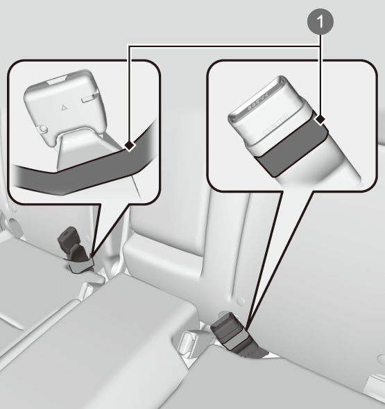 シートベルトのバックルをゴムバンドから外さないでください。シート操作などのときにバックルがシートクッションの下に落ちることがあります。- ゴムバンド