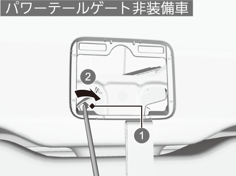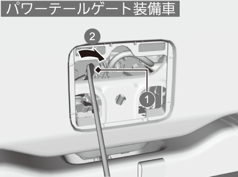 万一、テールゲートを開けることができなくなったときは、応急処置として次の方法で開けてください。