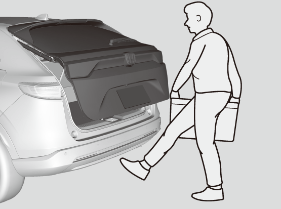 Hondaスマートキーを携帯し、片足のつま先をリヤバンパー中央の下へ入れて引くような動作を行うとテールゲートを自動で開閉することができます。