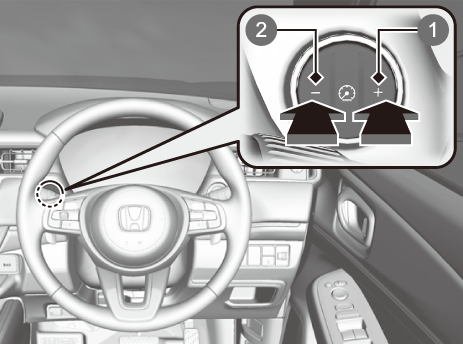 パワーモードがONモードのときに、+/-ボタンでインストルメントパネルの明るさを調節することができます。