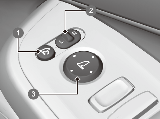 パワーモードがONモードで、ドアミラーの左右切り換えスイッチが左側にあることを確認します。