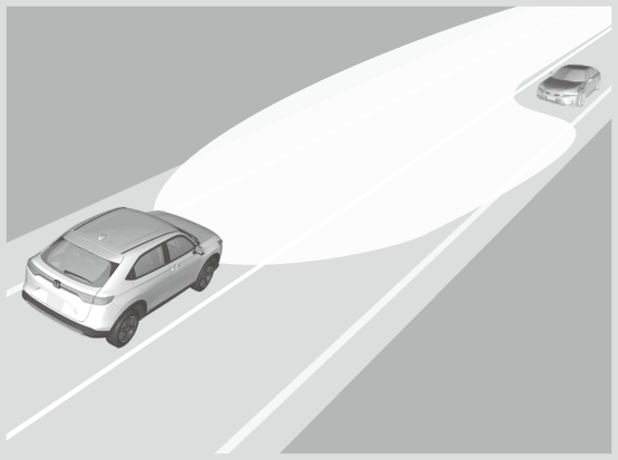 車速が10km/h以上になるとハイビームの配光の自動調整が開始され、以下の条件または車速に応じてハイビームの配光が変化します。