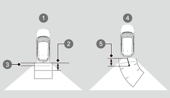 目安ガイド線:車両からの距離を表示することができます。この距離は、実際の距離とは異なる場合があります。