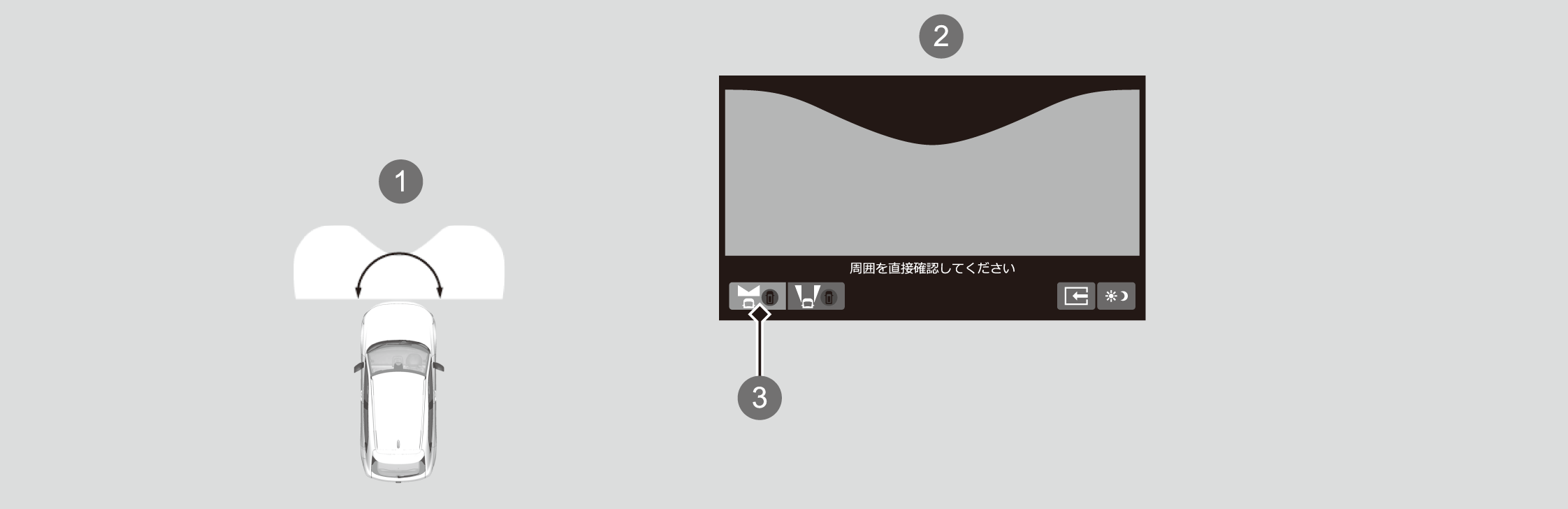システムが適切に作動するまでマルチビューカメラシステムを使用せず、目視やミラーで直接周囲を確認してください。