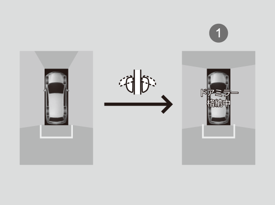 ドアミラーを格納してもグラウンドビューは表示されます。ただし、ドアミラー格納中は表示エリアおよび死角が異なりますので注意してください。