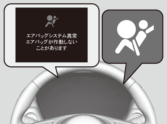 エアバッグやシートベルトプリテンショナーの異常などを、警告灯やマルチインフォメーションディスプレイで知らせます。