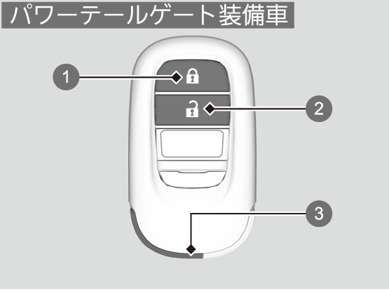 - パワーシステムの起動、停止のほかに、すべてのドア、テールゲートの施錠/解錠に使用できます。