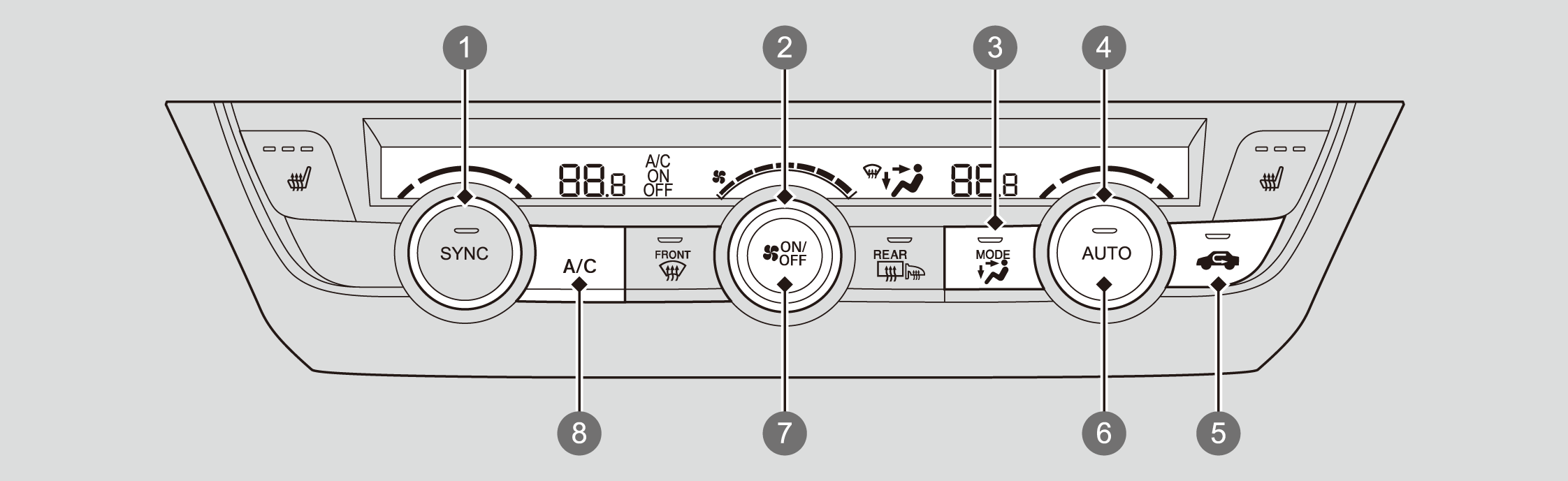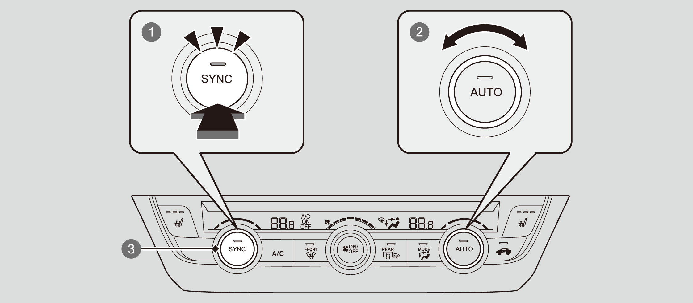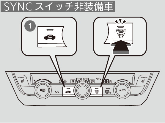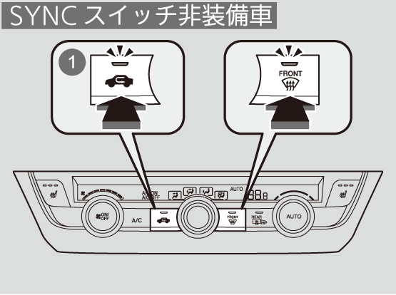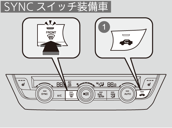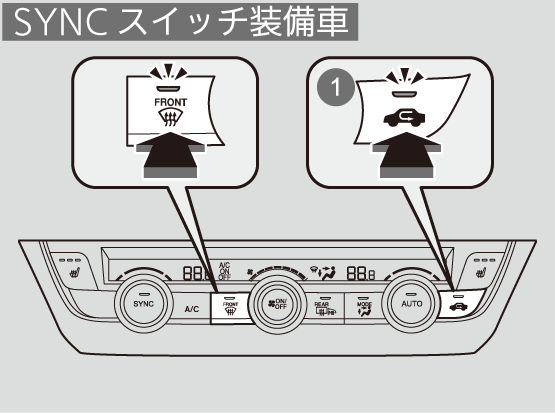独立モードに戻すときは、SYNCを押すか、助手席側の温度調節ダイヤルを操作します。