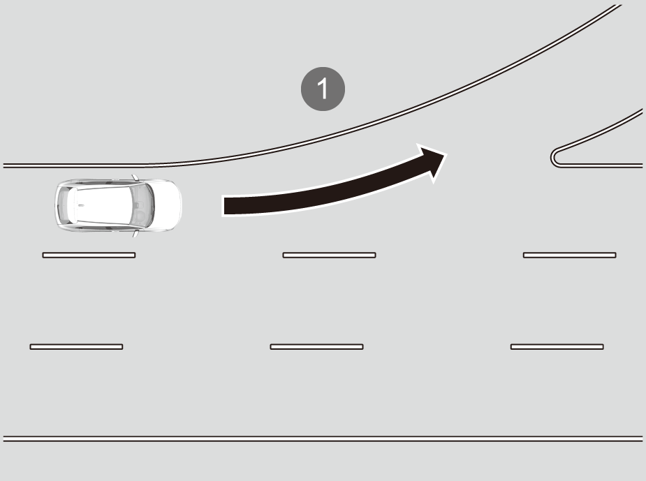 LKASは、急なカーブや加速・減速の繰り返しが続く道路では、システムが正常に機能しないおそれがあります。LKASは、高速道路や自動車専用道路などを運転するときに使用してください。