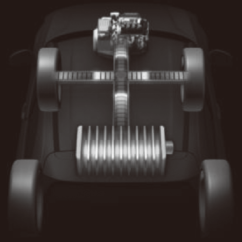 モーター ‒ 車軸を直接駆動します(状況によってはエンジンと連動します)。また回生ブレーキで得た電気を高電圧バッテリーへ供給します。