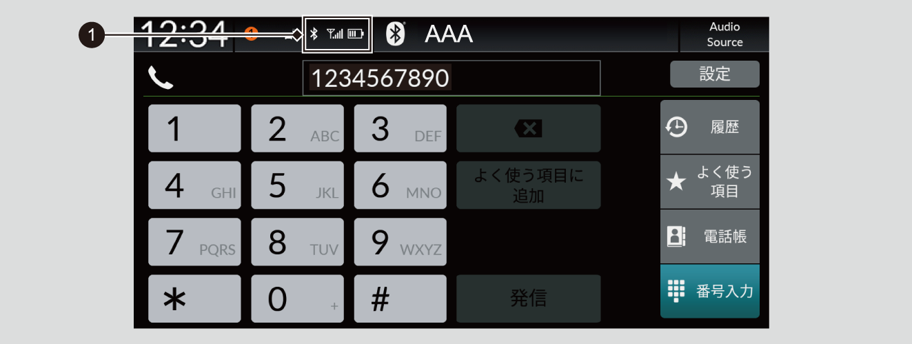 Bluetooth®接続が完了すると、画面の右上に携帯電話の状態を表す以下のアイコンが表示されます。:Bluetooth®接続中