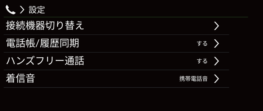 - ハンズフリー通話:車両のスピーカーに通話を自動的に転送します。(初期値:する)