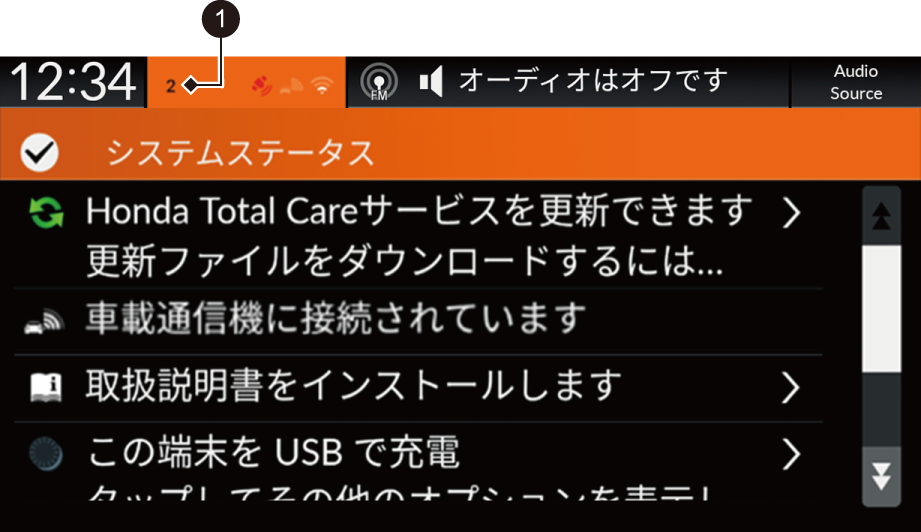 Hondaから提供されるHonda Total Careのサービスは更新されることがあります。Honda Total Careサービスに更新がある場合は、画面上部に表示されるお知らせアイコンから更新を行います。