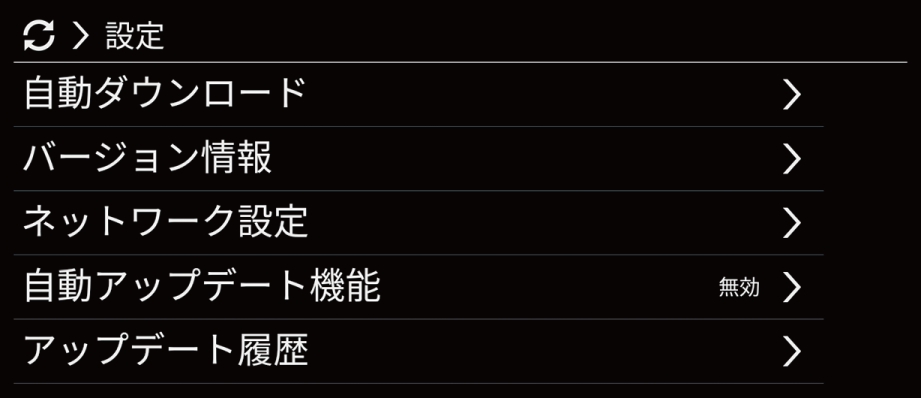 - アップデート履歴:アップデートの履歴を表示します。
