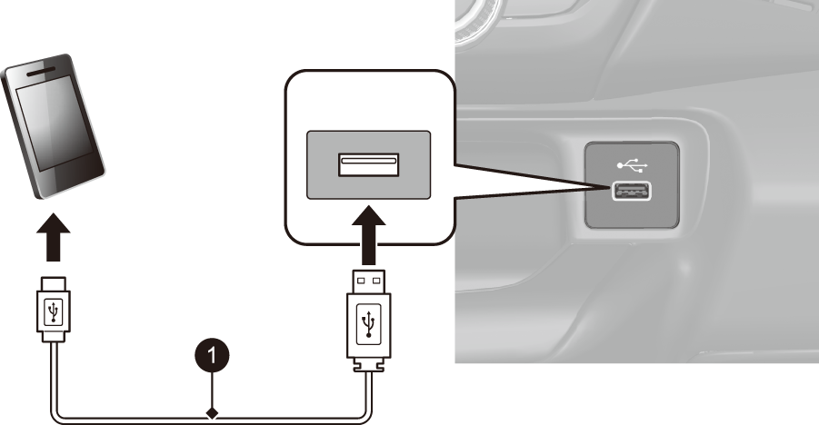 スマートフォンをUSBジャック(音楽再生/スマートフォン接続用)に接続する。