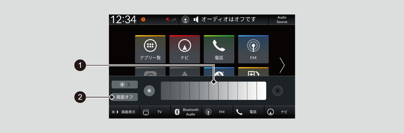 画面の明るさ調節バーをスライドまたはタップしても画面の明るさを調整できます。