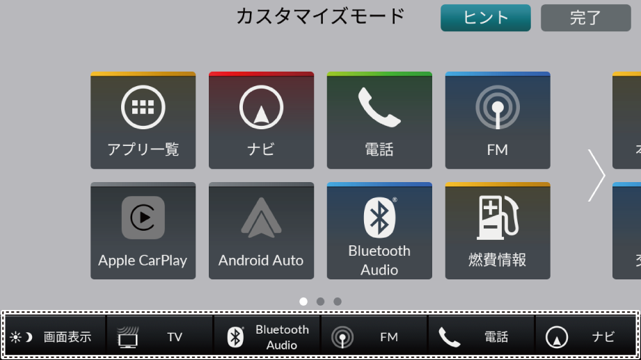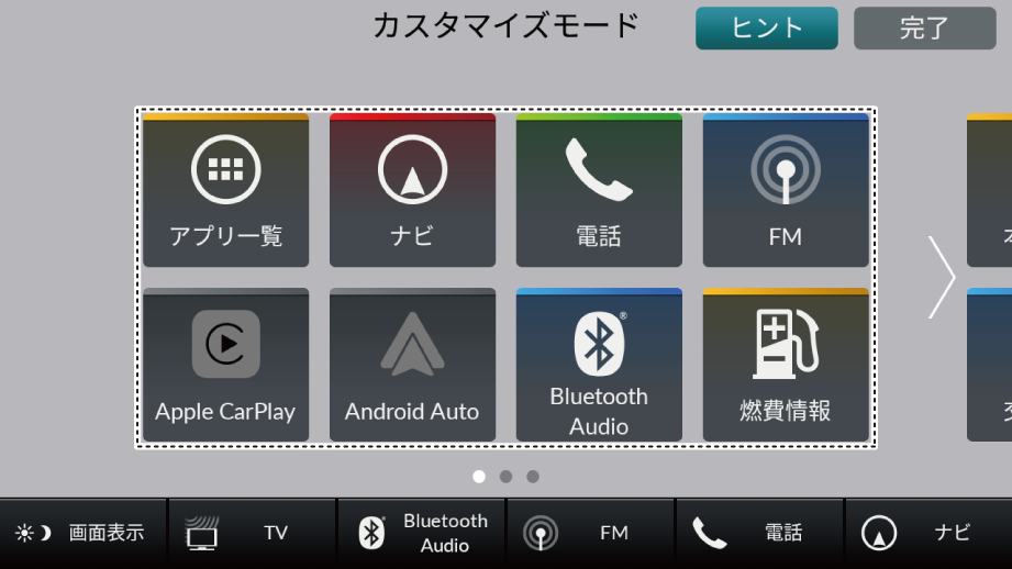 を選択する、または、カスタマイズモード画面を左右にスライドさせると、次の画面に切り替わります。