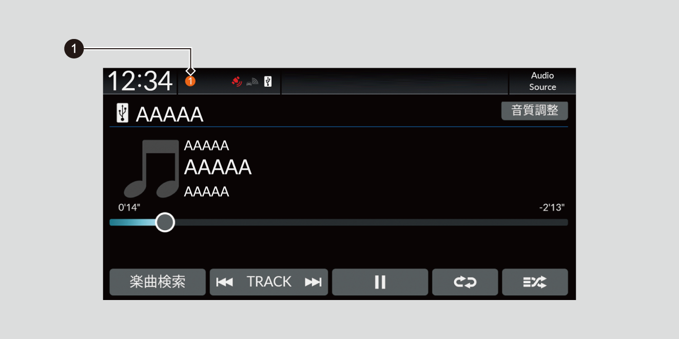 車両の情報や接続済みの携帯電話に関する情報などをお知らせアイコンで表示します。表示されたお知らせアイコンを選択すると、詳細が確認できます。