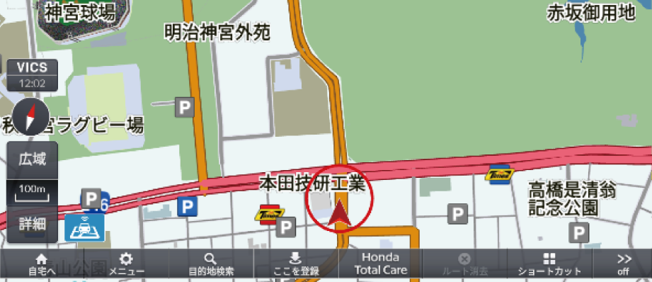 Honda Total Careメニューからも操作できます。HOMEボタンを押し、Honda Total Care→Myスポットの順に選択します。