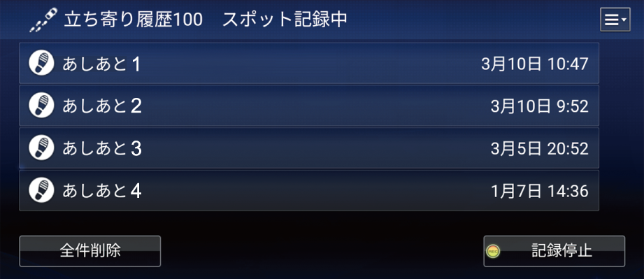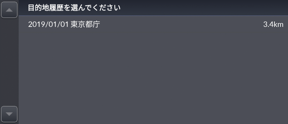 目的地履歴は、新しい順にリストで表示されます。100件を超すと古いものから消去されます。
