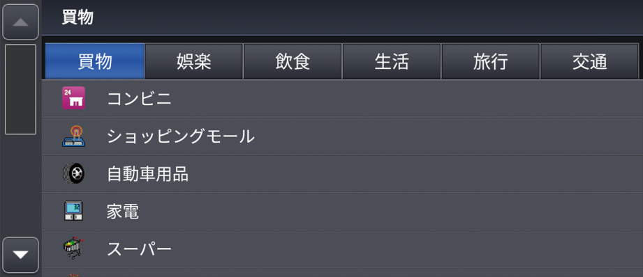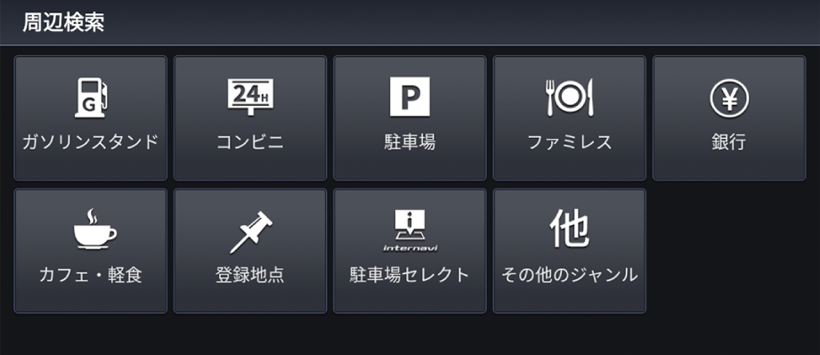- ジャンル:コンビニやガソリンスタンドなどの分類で施設を探します。