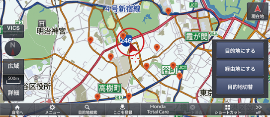 - Myスポット:Honda Total Careのinternavi Myスポットに登録した地点から探します。