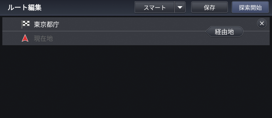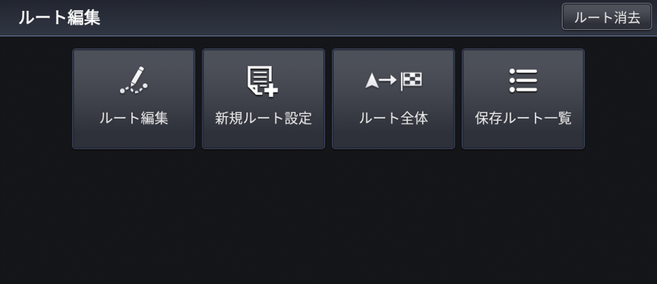 - 保存ルート一覧:保存したルートのリストを表示します。リストからルートを選択すると、ルート計算を開始します。