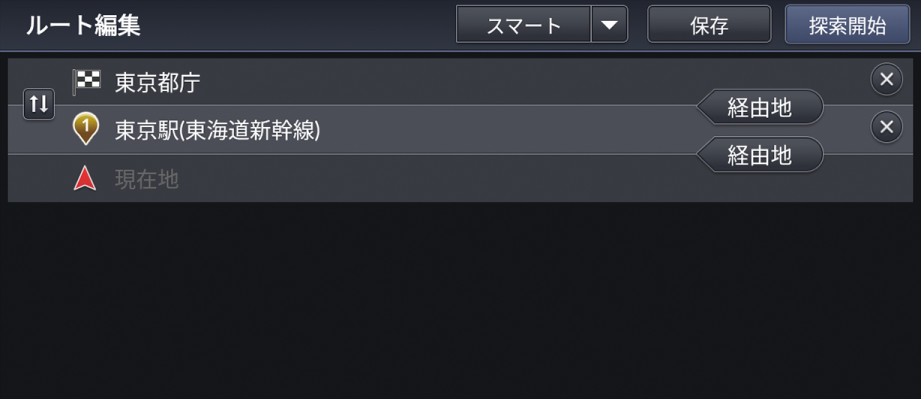 経由地や目的地の右側のを選択すると、ルートからその地点を消去します。