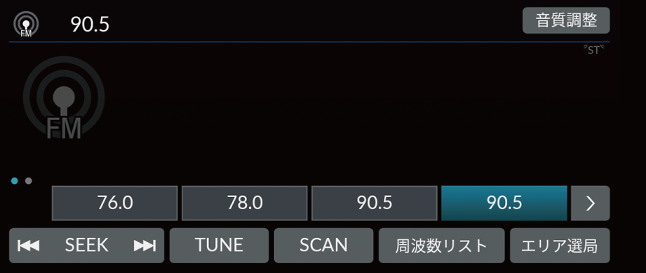 - SCAN:受信可能な放送局の音声を順に10秒間ずつ流します。聴きたい放送局のところで停止を選択すると、スキャンを停止して選局します。