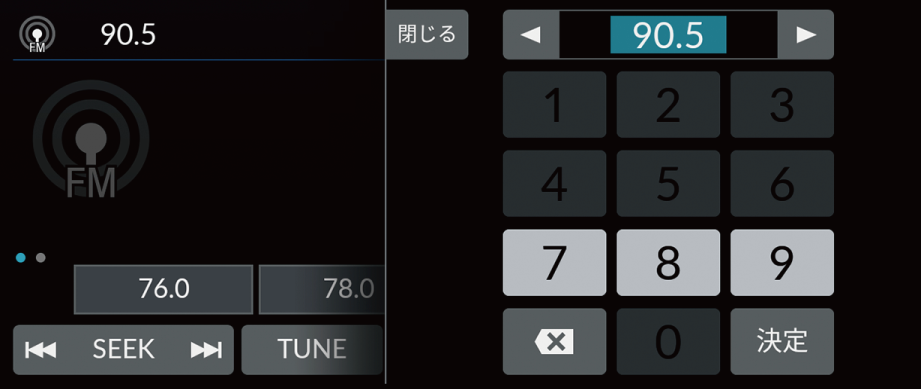 - 画面に表示されるキーボードを使って、設定したいラジオ周波数を入力する。