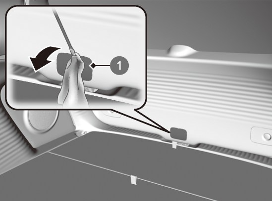 1. テールゲートのリッドに、マイナスドライバーの先端を差し込み、押し開ける。