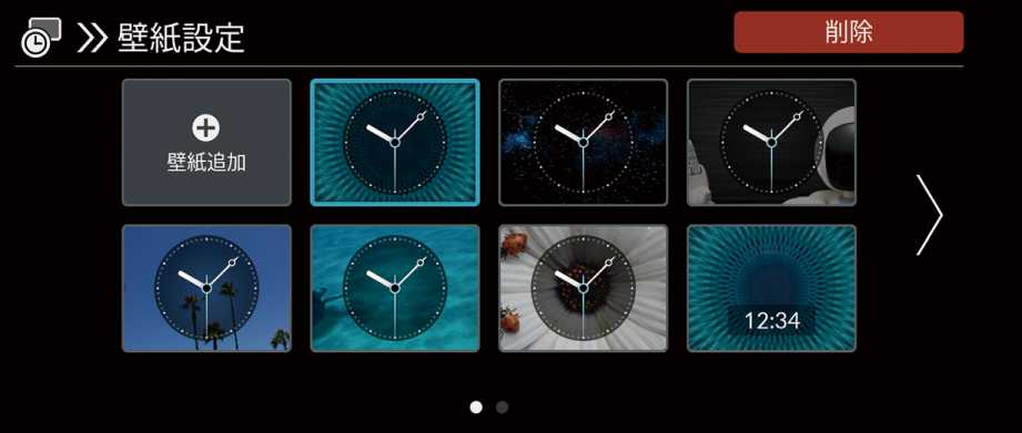 内蔵の画像やUSBメモリーから取り込んだ画像を時計画面の壁紙に設定します。