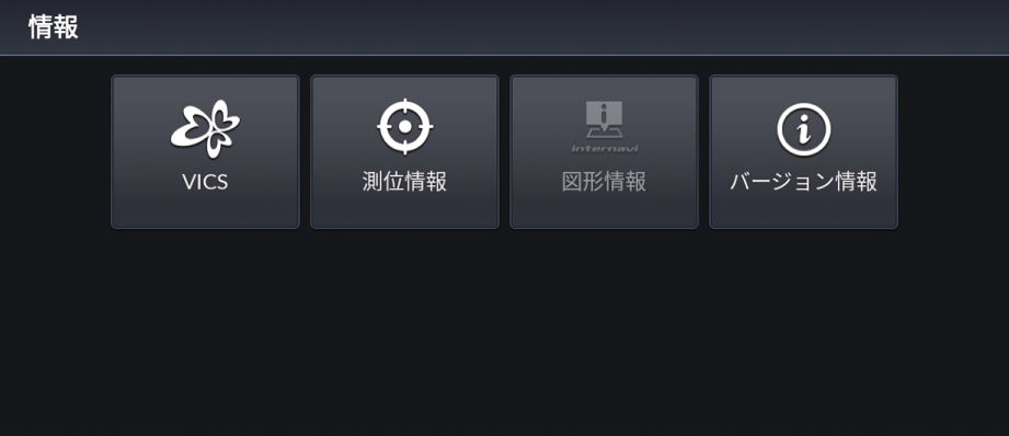 VICSやインターナビから受信した交通情報、GPS測位情報、ナビのバージョン情報を確認できます。
