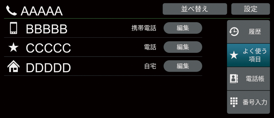 登録したよく使う項目の名称、電話番号、ラベルを編集できます。