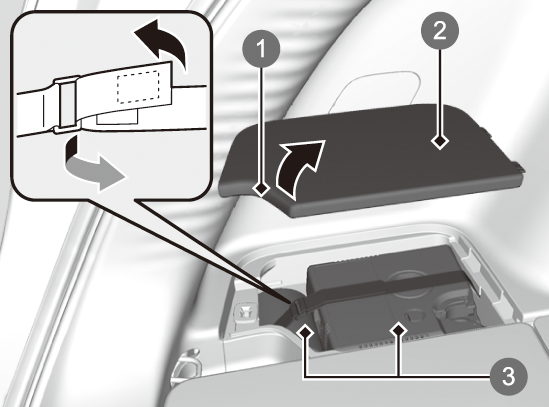 - カーゴスペース左側の取っ手を持ち上げ、リッドを外す。