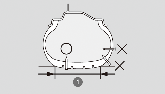 タイヤに刺さったクギなどは抜かないでください。抜いてしまうと、タイヤパンクの応急修理キットでは応急修理が不可能になる場合があります。