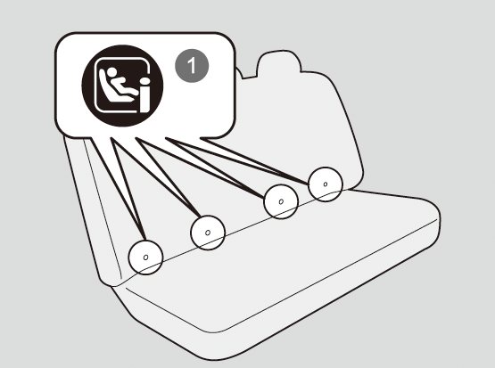 ISOFIX/i-Sizeチャイルドシートは、リヤシート外側2座席に設置できます。チャイルドシートは、下部取付金具とトップテザー取付金具で固定します。