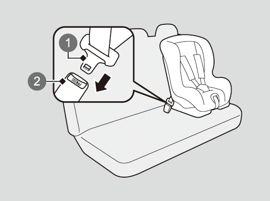 - シートベルトをチャイルドシートに通し、タングプレートをバックルに差し込む。