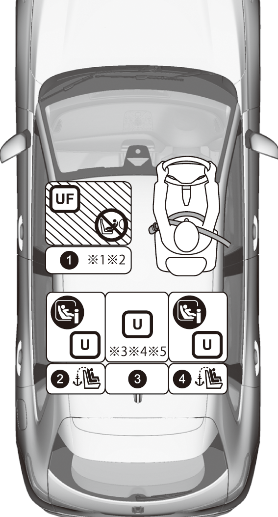 - 記載のチャイルドシートは車両販売時点のHonda純正チャイルドシートです。最新のHonda純正チャイルドシートについては販売店にお問い合わせください。