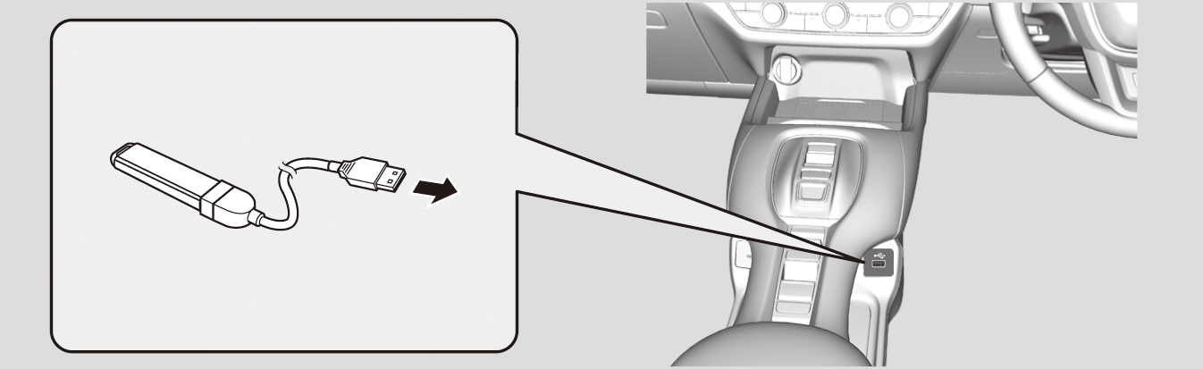 USBデバイスをUSBジャック(音楽再生/スマートフォン接続用)に接続する。