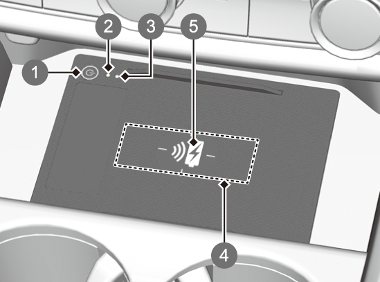 パワーモードがアクセサリーモード、またはONモードのときに使用できます。ワイヤレス充電規格Qiに適合した機器をワイヤレス充電器の充電エリアの上に置くことで充電できます。